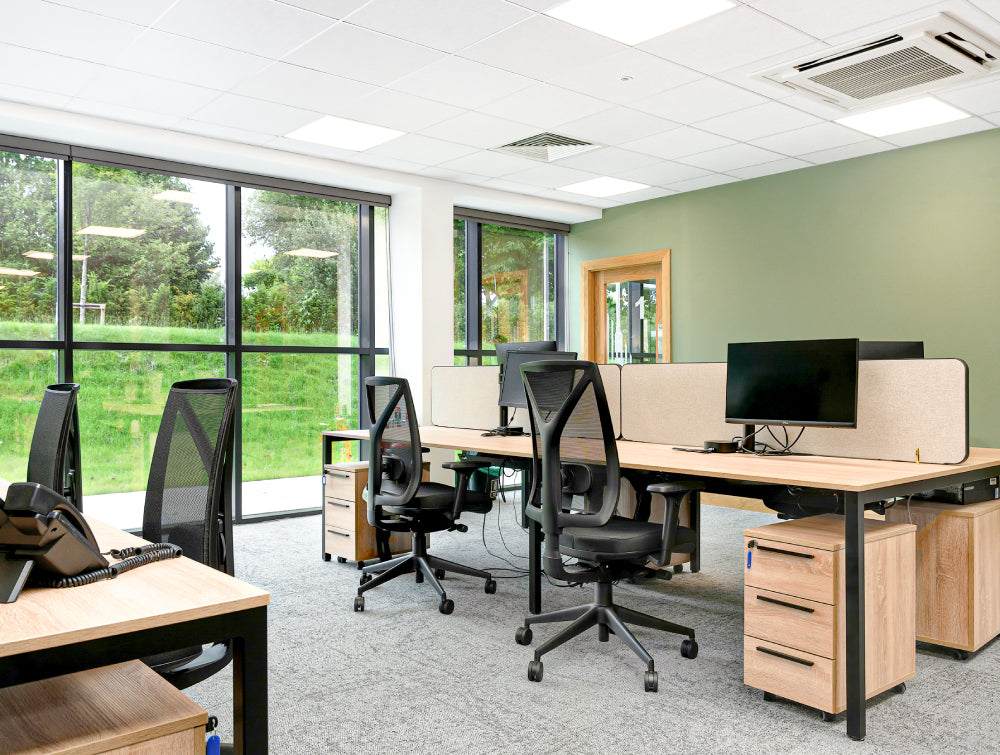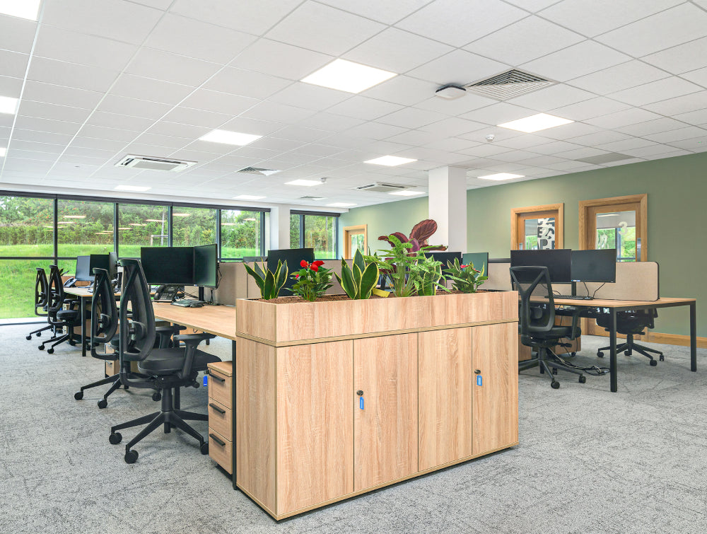 Sleek, low-maintenance solutions were ensured by the use of under-desk cable trays, protected routes and on/under-desk power modules. To support ergonomics, single and dual monitor arms were installed.