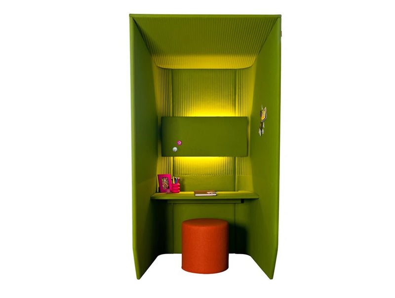 The BuzziBooth Single acoustic workstation pod is made of sound-insulting felt that dampens outside sound for private phone calls and focused work. This product is an innovative solution, ideal for office, library or each noisy place where you need quiet atmosphere to work.