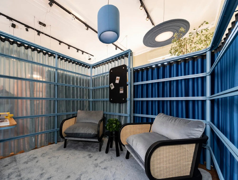 Don't be deceived by the straightforward design of this pendant lamp. It offers the best of both worlds: functional lighting embedded in a proved acoustic ceiling solution. One of the first acoustical lighting solutions that perform equally on lighting as well as acoustic level. BuzziMoon's LED module provides diffused downlight with an output of 2500 Lumen at a temperature of 3000K. Available in different fabrics and various 3D patterns to suit any modern residential or commercial space.