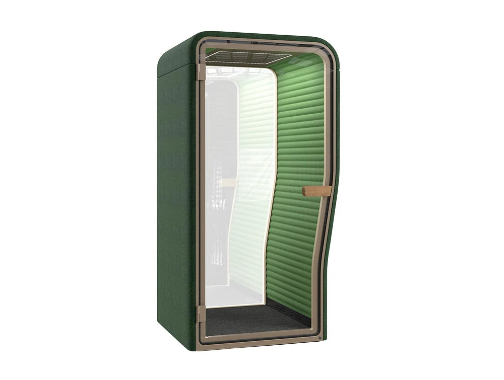 BuzziNest Booth is all you need to erase distractive noise from any workplace. The compact acoustic privacy booth for one offers a private space to work and take calls in any open space without disturbing others, and most importantly, being disturbed. Due to its upholstered exterior and fabric panels on the interior, BuzziNest Booth effectively dampens sound from every direction to create maximum peace and quiet for everyone in the office, whether you are working inside BuzziNest Booth or out.