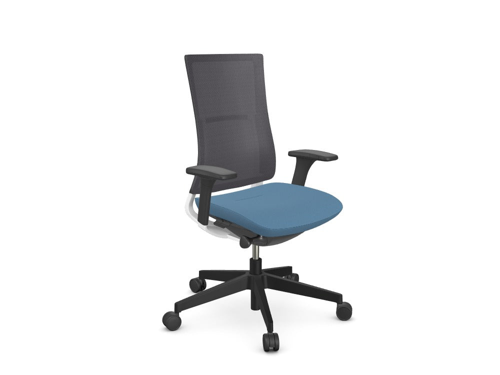 Specification: Armrest - PU Armrest, Lumbar Support - Not Required, Coat Hanger - Not Required, Castor or Glides - Hard Castors Black, Headrest - Not Required, Aluminium Parts Colour - White, Fabrics - EV-25, Mesh Finish - 60025 Rhythm, Base Colour - Black