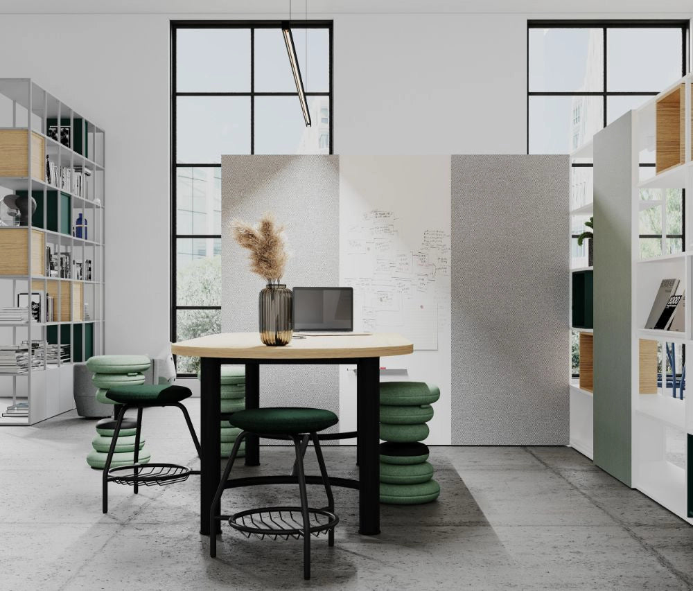 The Demino table system features a unique, industrial design with both high and low tables suitable for a variety of spaces. Its sturdy structure includes large tabletops, legs connected by a railing, and a range of colour combinations, offering both stability and versatility. Perfect for common areas, offices, cafeterias, and kitchens, the Demino tables bring a modern touch to any environment while maintaining functionality and style.