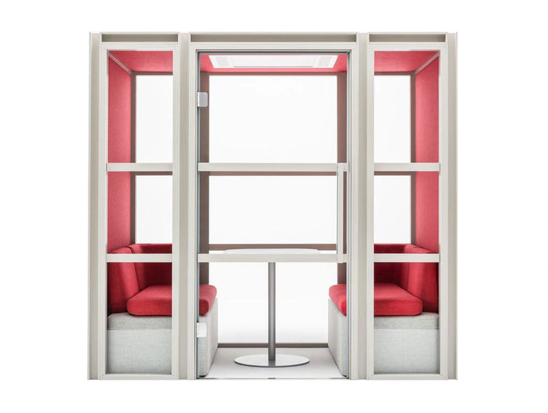 Depending on the users needs the pod can become a large phone booth or a meeting place of 2-4 people. It's a space dedicated to quiet work, important conversations and brainstorming. Automatic lighting and quiet ventilation system ensure optimal working conditions, while eliminated floor facilities cable management and system configuration. The Hako Meeting pod ensures boosted concentration and privacy of discussions; its an alternative to conference and meeting rooms.