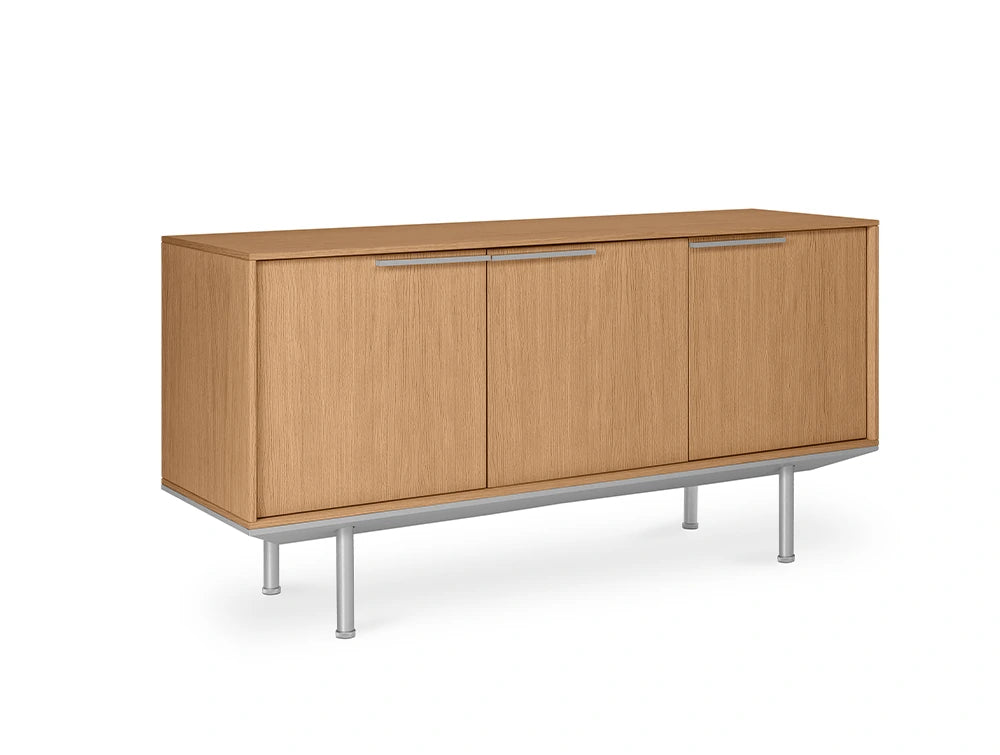 The In collection cabinets feature high legs and aluminium bases, echoing the lightweight, modern look of In desks. Made with natural veneer and lacquered MDF in a full range of Balma finishes, they offer customisable colour options to suit any interior. Stylish and practical, these cabinets bring refined elegance and functional storage to contemporary office environments.