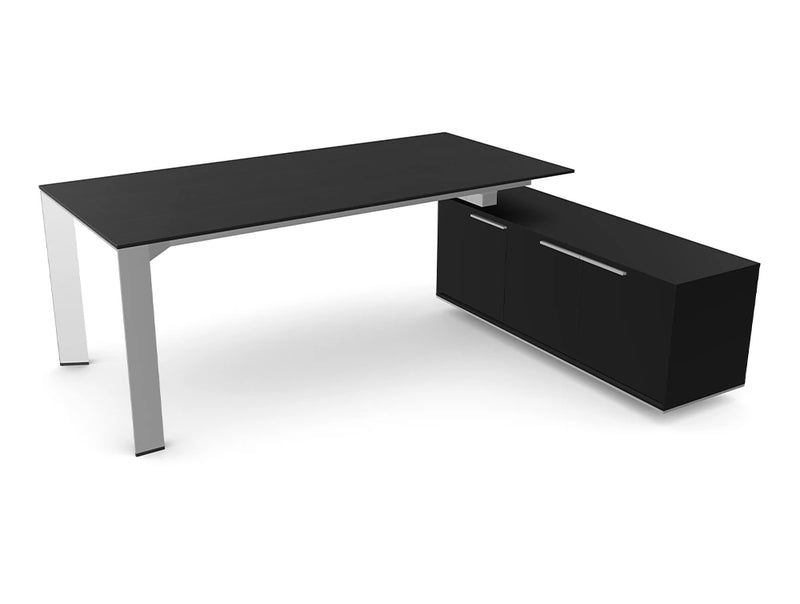The In Office Desk combines modern materials—quartz conglomerate, compact laminate, and natural veneer—with a unique frame design that changes with your view. This fusion creates a refined, visually light structure that adds elegance to any workspace. Crafted for both aesthetics and durability, the In desk offers a sleek and contemporary solution for sophisticated office interiors.