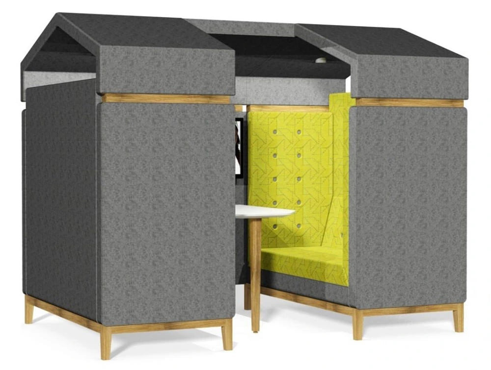 The Jig Cave office pod provides a private space for office meetings. Fully customisable with acoustic walls, table top & monitor mount. Can be configured with a vast choice of upholstered finish & comes with overhead LED lighting.
