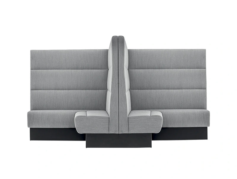 Modus is a new innovative collection of upholstered modular seating, designed to allow several custom made solutions while guaranteeing absolute flexibility during assembly and installation phases. Back to back corner unit with padded seat and backrest in polyurethane injected foam. The upholstery may have many finishes: smooth, with buttons, capitone with horizontal or vertical seams. Height: 1100, 1400, 1750 mm. Available as an optional a laminate or upholstered back side panel.