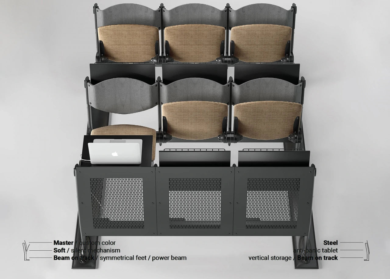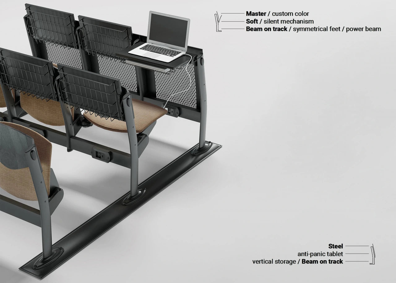 Omnia is a versatile seating system combining chairs with integrated writing surfaces, ideal for modern classrooms and lecture halls. Designed for maximum comfort and functionality, it offers exceptional ergonomics within a compact footprint. Omnia enhances learning spaces with its smart, space-saving design that promotes comfort, flexibility, and efficient use of space.