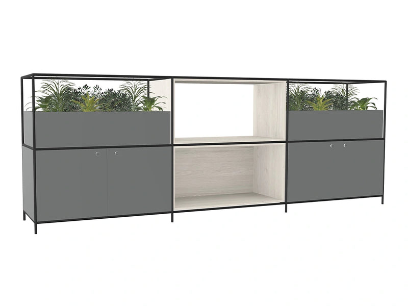 Ws.D Ionic Credenza with Double Grid Unit Storage and Planter