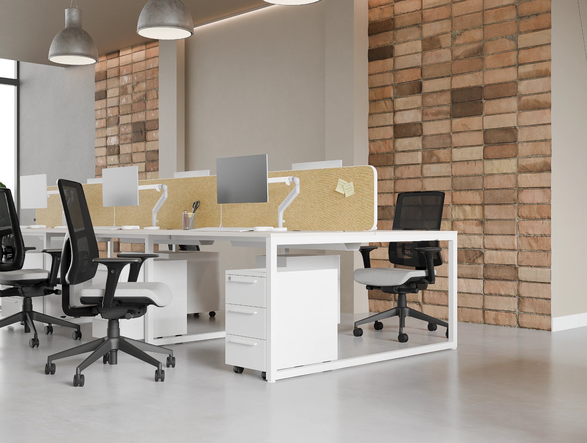 Ws.D offers a Light Desk Screen to create a comfortable and productive workspace. The company provides desk screens in four different shapes, including straight, arc, wave, and grip, to suit any desk design. The Light Desk Screens are versatile and customisable according to the user's specific needs, with a wide range of finishes and sizes available to match the office decor. The screens are available in two trim types, PVC and fabric, for added style and functionality. The Light Desk Screens serve various purposes, from providing privacy while working to reducing distractions and adding a modern touch to the office. With their sleek and lightweight design, the screens are easy to install and can be moved as needed. Ws.D is dedicated to offering high-quality and functional office furniture that meets the unique needs of its clients. The Light Desk Screen is one of many products the company provides to help individuals create a workspace that is comfortable, efficient, and inspiring.